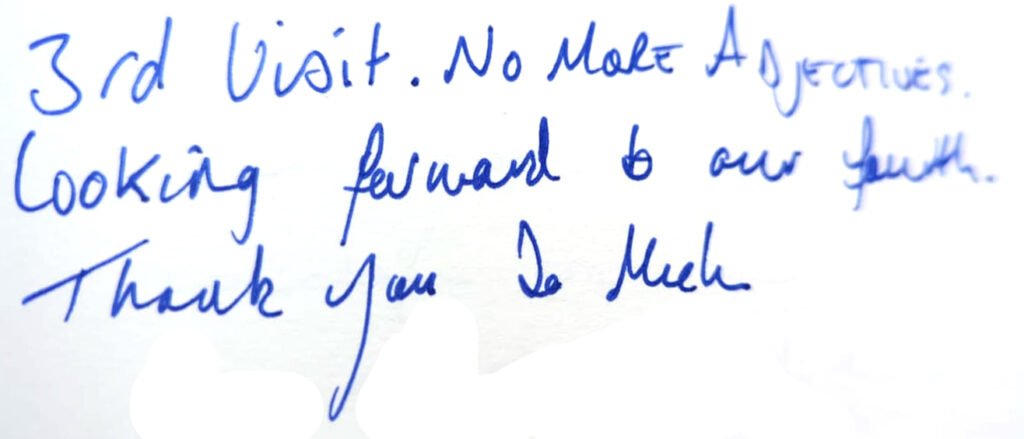 3rd visit. No more adjectives. Looking forward to our fourth. Thank you so much.”